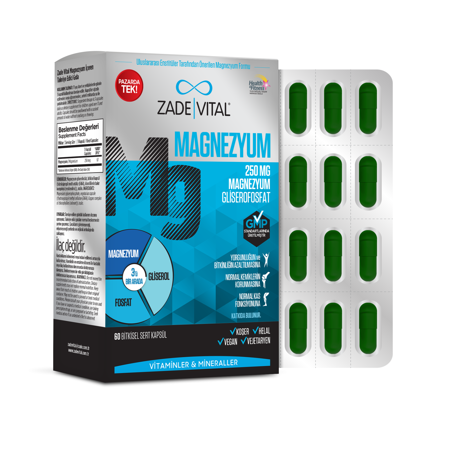 Zade Vital Magnesium 250 mg 60 Kapsül